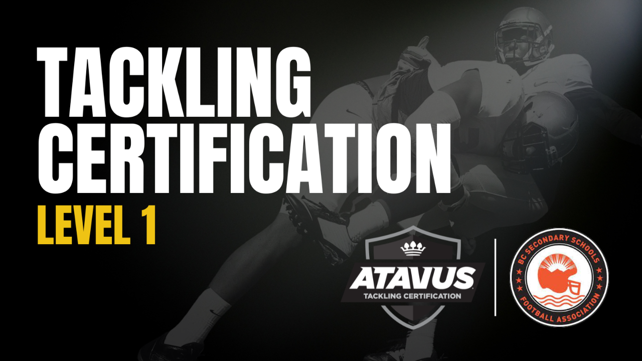 Atavus Tackling Certification course covering pre-contact and contact tackling technique instruction, drill development, and levels of contact training.